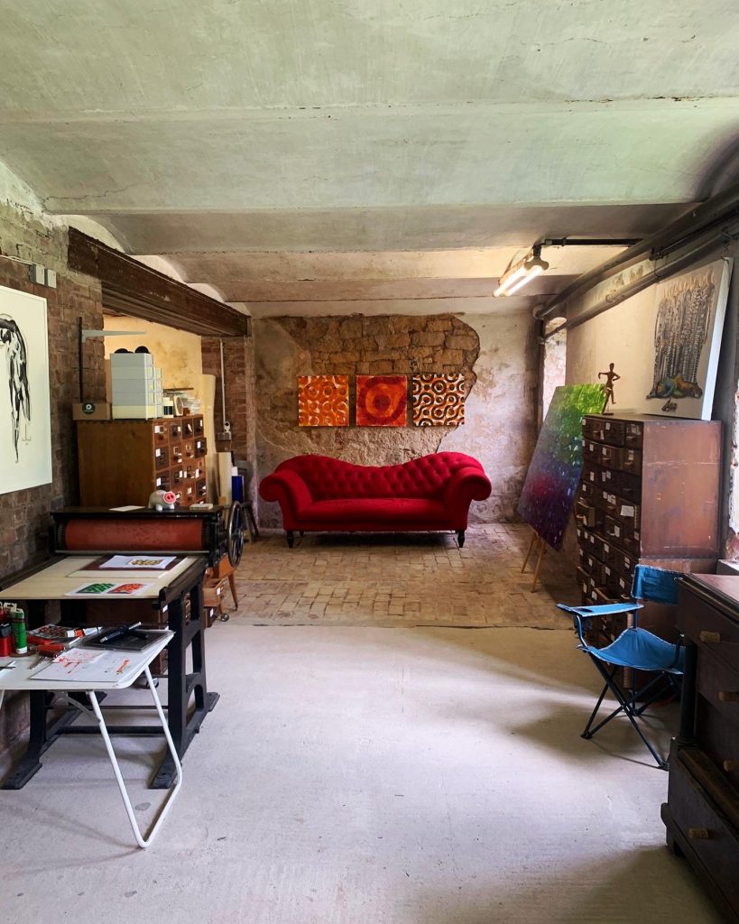 Entdecke einen Raum, in dem Industriegeschichte auf Kreativität trifft. Im Herzen der ehemaligen Eisengießerei Schulde entstehen im Lapa Studio eine Vielzahl künstlerischer, grafischer und visueller Projekte. Hier laden wir dazu ein, in kreative Prozesse einzutauchen, die von grafischen und digitalen Drucken bis hin zu visuellen Experimenten und fesselnden Texturen reichen.